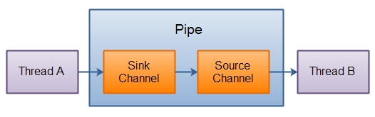 一个Java NIO的管道是两个线程间单向传输数据的连接。一个管道(Pipe)有一个source channel和一个sink channel(没想到合适的中文名)。我们把数据写到sink channel中,这些数据可以同过source channel再读取出来。